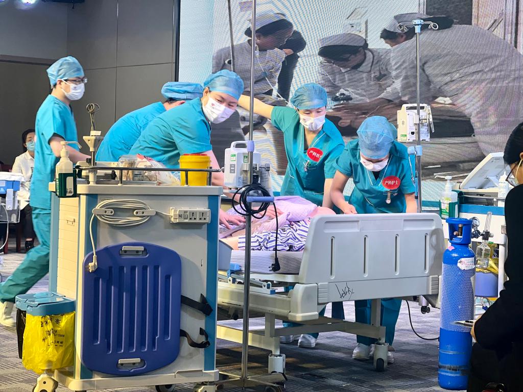 第二环节团体技能演练竞赛中,多学科救治参赛队员在演练中如行云流水,展示出娴熟规范的专业操作技能。经过比拼,他们以出色的表现获得团体演练最高分值,获得各位专家评委团及现场同仁一致好评。