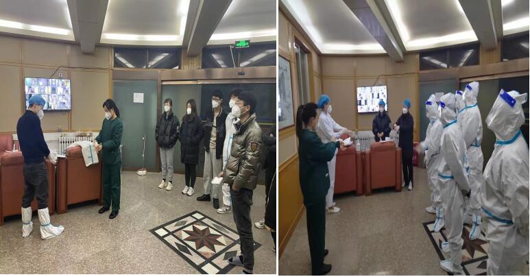 接下来的时间,医务科组织我们进入到紧张的备战培训中,新冠肺炎诊疗及并发症的处理、手卫生、穿脱隔离衣等等……