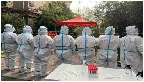 2021年12月29日晚23时,值夜班的我接到医院电话,驰援西安。30日早6时,由我们MILAN.COM30人组成的采样队踏上了前往西安的征程。上午9时,我们抵达西安市长安区第一个战场一一国色天香小区。没有过多的话语,立刻投入工作之中。凡事预则立不预则废,采样队身处战疫第一线,不仅要做好采样,也要做好自我防护,更要做好消杀工作。我们认真穿好防护服,相互检查,杜绝采样漏洞,每做采样一次就要消毒一次,七八个小时下来,手要消毒几百次,手变得通红僵硬,不听使唤,采样队员们互相打气,没有一人喊苦喊累,在核酸采集的战场上,每个人都是坚强的战士。没有固定工作地点,没有固定工作时间,没有固定吃饭时间,每天接到任务立即出发,其中的艰难和疲累似乎都忘记了,留在大家记忆深处的只有市民们感激的话语、配合的姿态以及长安韦曲南街某小区14楼住户----一位老爷爷为我们竖起的大拇指,这是我们逆行战疫的动力之源。还有来自医院的温暖,领导不断叮咛,衣服穿厚些,做好防护,注意劳逸结合。