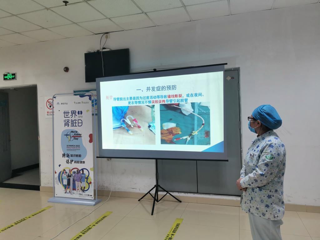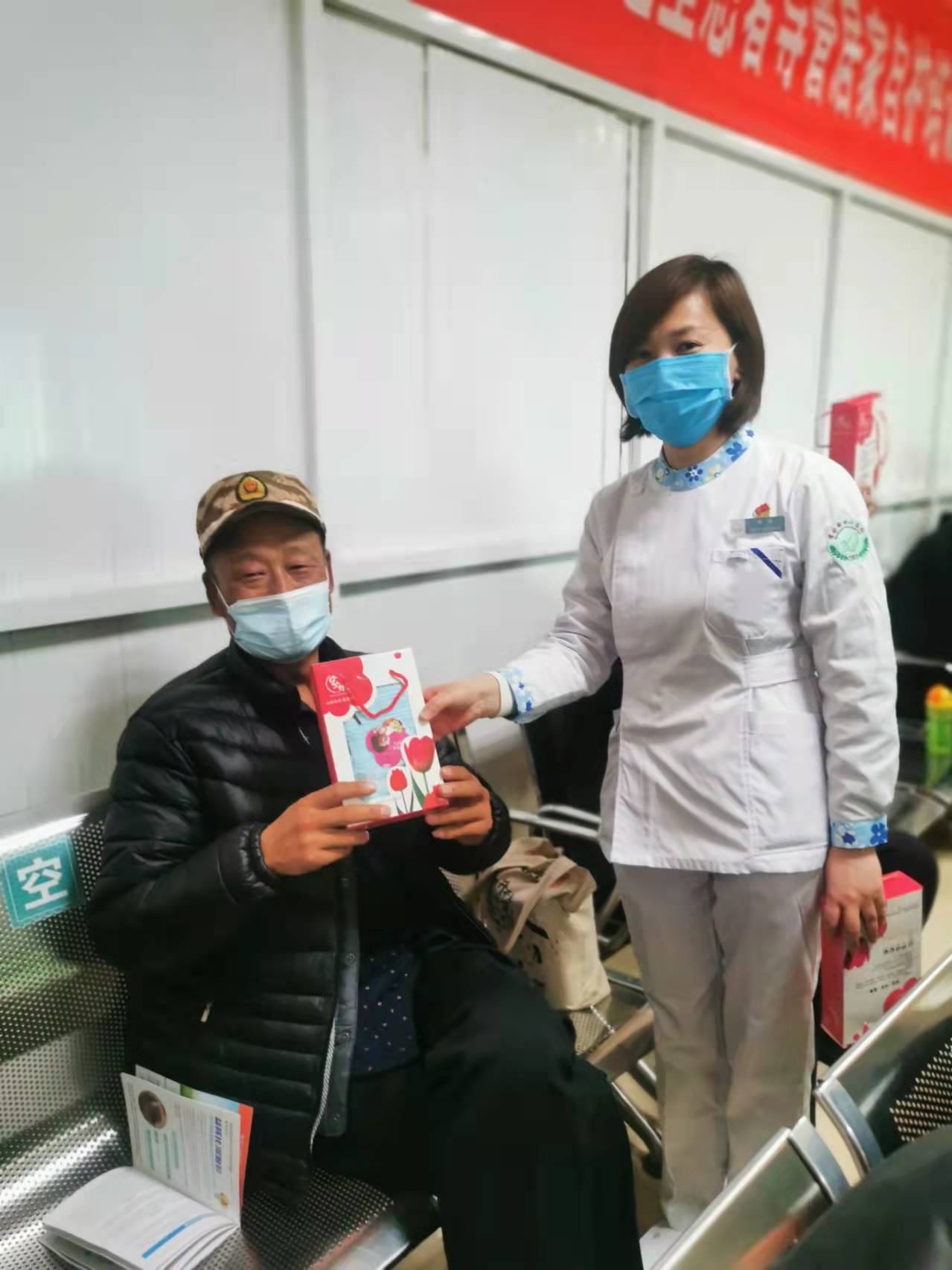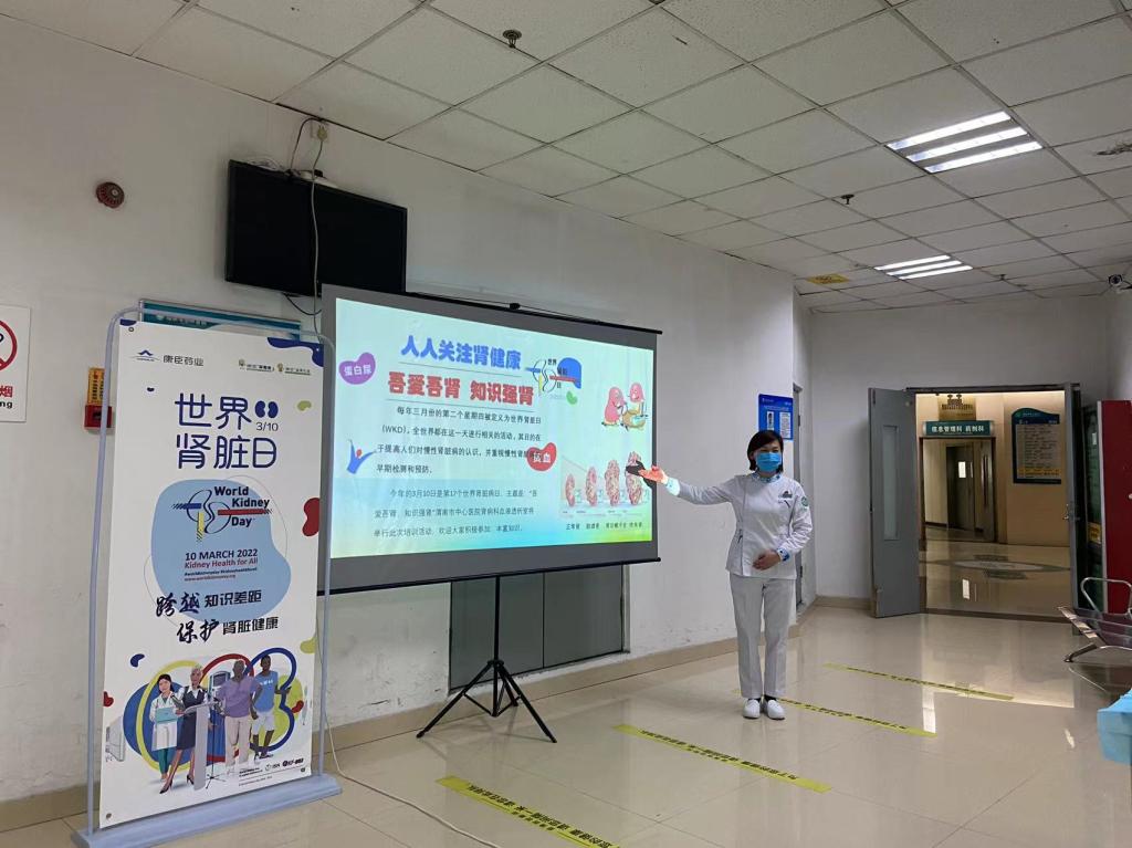 课程开始前,医护人员在门诊大厅为患者们发放肾脏疾病资料、普及肾病知识,患者及家属们积极参加活动。