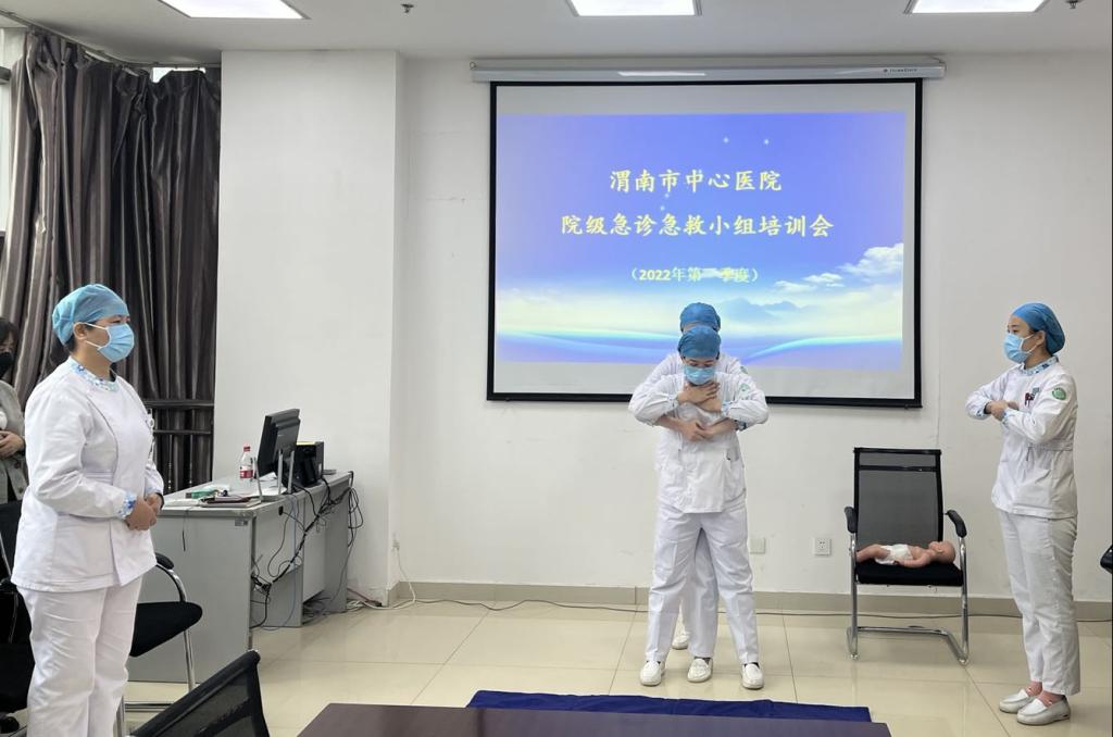 急诊科“守护生命,救在眼前”科普主题活动宣传护士,展示了徒手心肺复苏、海姆立克急救法等急救技能。