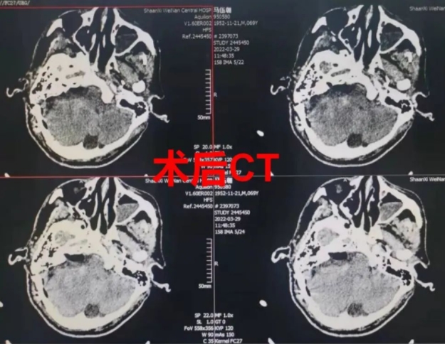 3月28日,由主任医师赵金安监台,主治医师段吉强主刀,历时8小时顺利完成手术,术中肿瘤全切、各神经血管完整解剖保留,术中出血约200ml。术后1小时患者即苏醒,生命体征平稳。