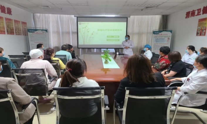 护士长张红艳以“肿瘤化疗患者健康指导”为题,从化疗的概念、化疗后并发症、膳食营养等方面进行讲解,呼吁大家养成科学的生活习惯,践行健康文明的生活方式,做自己健康的第一责任人。