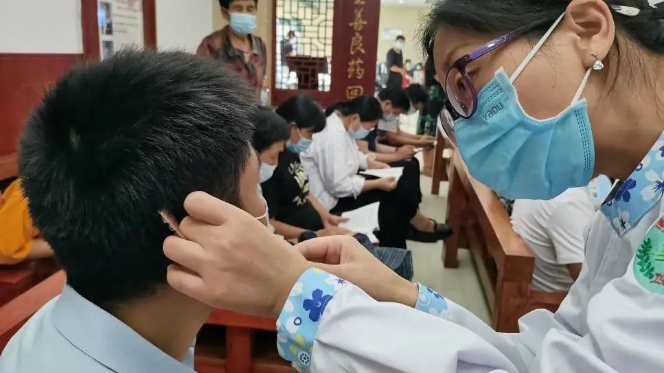 医护人员耐心回答了现场患者的提问,为大家发放了《中医体质分类防治与养生》科普书,并免费为耳鸣、失眠患者进行耳穴压豆疗法,现场患者受益匪浅,得到大家一致好评。