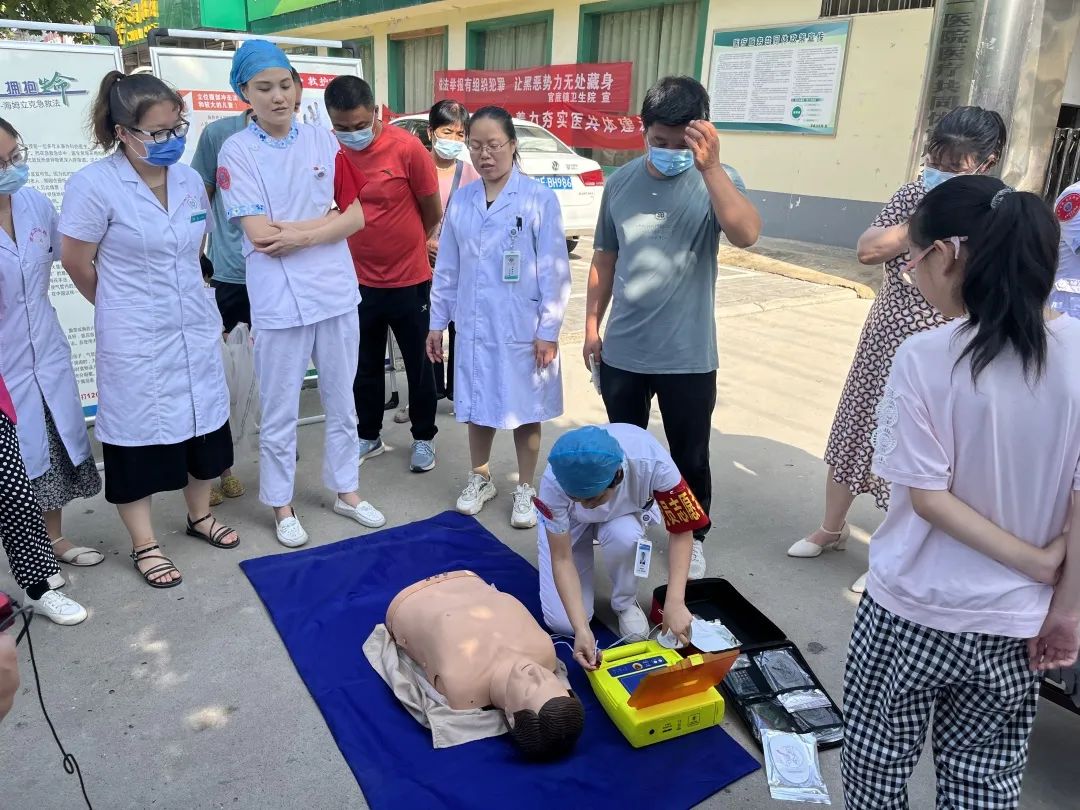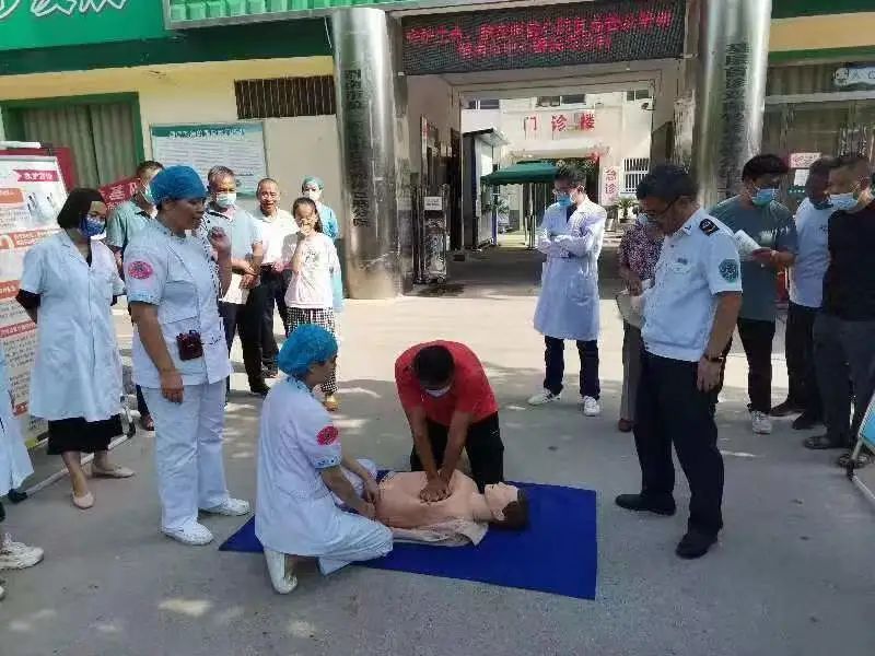 活动首先由急诊急救科普团队“实战”演示了心肺复苏科普项目以及海姆立克急救操作法。