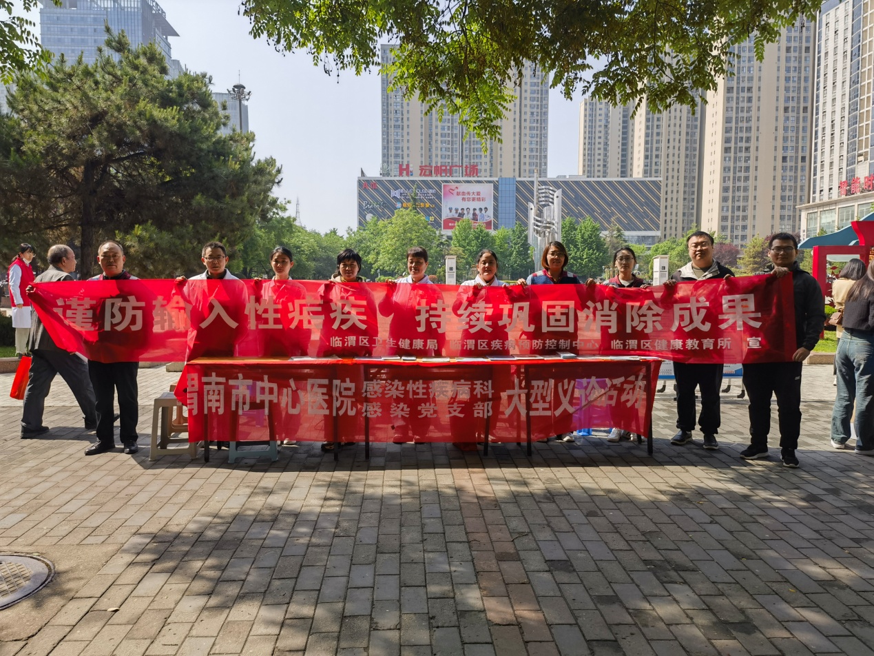 4月25日上午,MILAN.COM感染性疾病科、感染支部联合临渭区疾控中心在渭南中心广场,开展以“防止输入再传播,巩固消除疟疾成果”为主题的全国疟疾日宣传义诊活动。