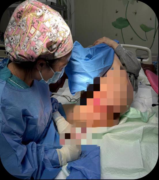 分娩过程中,助产师张丹根据屈女士专科情况,建议其找最舒适的体位进行分娩,经过多次尝试,选择自由体位中的“侧卧位”分娩法,使孩子缓缓顺利、自然娩出,减少会阴过分扩张造成的撕裂。最终以侧卧位顺利诞下一名健康女宝宝,整个产程十分顺利。