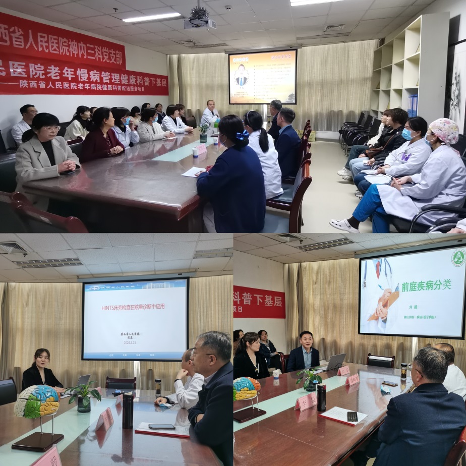 随后,陕西省人民医院副主任医师候辰讲授《HINTS床旁检查在眩晕诊断中应用》,安康市中心医院主任医师刘毅讲授《前庭疾病分类》,原向军主任就眩晕学科建设工作进行汇报。大会主席李锐教授做点评。