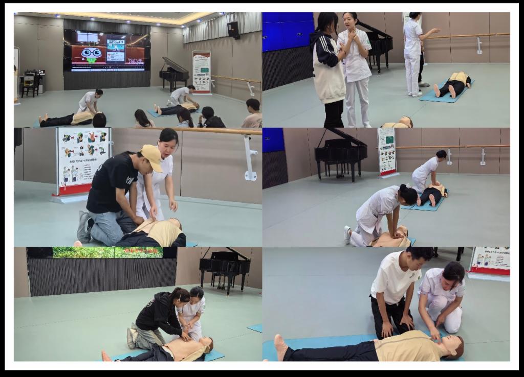 针对异物卡喉这一常见的紧急情况,儿科曾晓翠医生详细介绍了海姆立克急救法专业理论知识。采用动画视频形式生动展示了急救原理、方法。儿科樊苏宁、李倩护士演示了海姆立克急救法、心肺复苏的正确操作步骤,讲解了判断意识、胸外按压、开放气道及人工呼吸等关键步骤,并强调了“黄金四分钟”对于挽救生命的重要性。在护士的指导下,师生们积极参与实操练习,亲身体验了心肺复苏的全过程,不仅提高了大家的自救互救能力,也让师生们深刻认识到掌握急救知识的重要性。