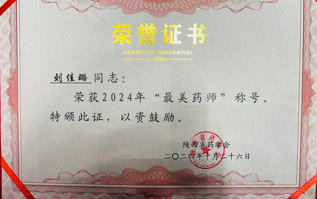 她的努力也得到肯定,2022年在陕西省药师风采大赛暨临床药学案例比赛及省传播学会举办的健康科普微视频大赛获优秀奖。2023年在渭南市第二届药师技能大赛获一等奖。2024年在陕西省药学会举办的MKM杯·药学服务技能大赛陕西赛区决赛中获优秀奖。