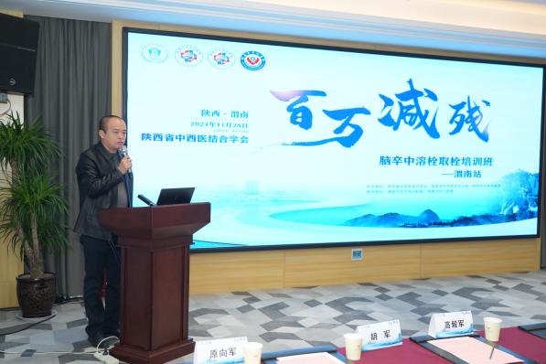 西安交通大学第一附属医院多位专家进行现场授课。韩建峰教授对《国家卒中百万减残工程2024年工作》进行总结;高毅军教授讲述《开展溶栓取栓等适宜技术推进百万减残工程》;屈秋民教授对《2023版中国脑血管病临床管理指南》进行解读。接着,市中心医院原向军对《渭南市卒中中心2024年质控工作》进行总结分析,并对2025年质控工作进行安排部署。