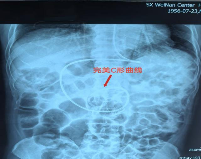 为尽快解决患者的营养问题,避免因误吸反流引起的并发症导致病情加重,护士长杨霏与护士程张雅、杜京经过精准评估,决定对患者进行幽门后喂养。通过徒手盲插,成功在床旁置入空肠营养管,并经DR验证,确认空肠管已完美到达指定位置,形成理想的“C”型曲线。