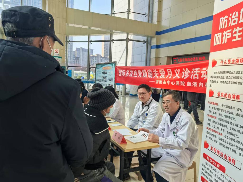 3月17日上午,在门诊大厅,血液内科牵头,联合骨科、肾病科、营养科等组成的专家团队开展义诊。专家们为患者提供免费疾病筛查、诊疗咨询,针对患者普遍关注的骨痛管理、肾功能维护、营养支持等问题,现场提供个性化诊疗方案。