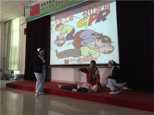 我院急诊科开展以“守护生命,救在眼前”为主题的系列活动以来,受到社会各界人士一致好评。11月30日,在渭南市实验初级中学示教会议室,一场栩栩如生的急救培训课迎来阵阵掌声。由MILAN.COM急诊科组织的8名医务人员专业团队走进实验初级中学,200余名师生现场学习急救知识并进行模拟演练。