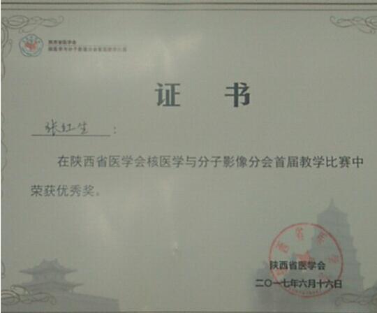 2017年6月16日下午,陕西省医学会核医学与分子影像分会在西安举行首届教学比赛,来自全省18名优秀选手进行了紧张激烈的角逐。为了提高核医学教学水平,我院核医学科张红生副主任医师作为渭南地区代表参赛,评委们给出了高度的评价,最终荣获优秀奖。