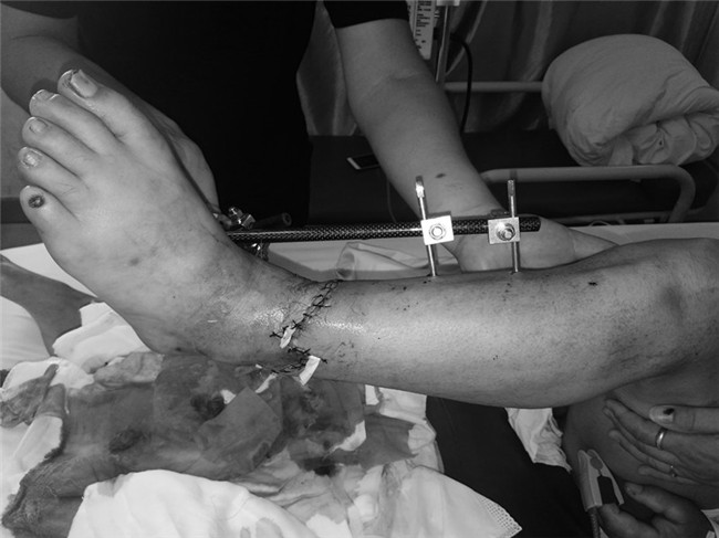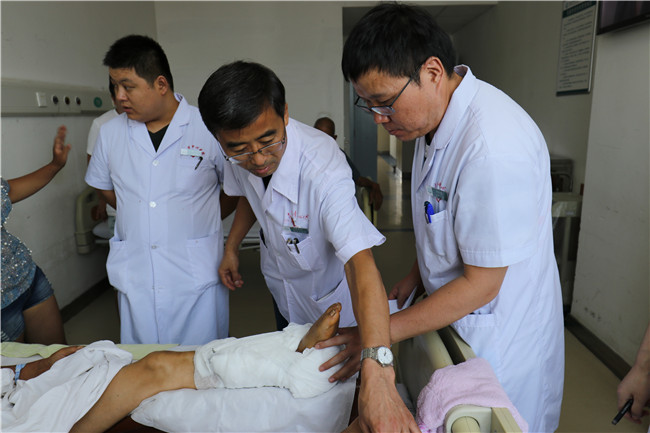7月10日,老宋在工地干活时不慎被重物砸伤左小腿,导致老宋的左小腿完全断离,被120救护车火速送到了我院急诊科,当时已经是下午17:27分,急诊科医师在简单处理后,急忙来请骨二科主治医师孙亮来会诊,立即收住入病房。