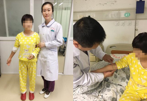 27岁的患者李某,停经45天,B超提示瘢痕妊娠,宫腔积液,在市区多家医院就诊,建议行保守治疗或剖宫手术,因患者有强烈的二胎生育需求,经慎重考虑后来我院产科住院治疗。传统的保守治疗住院时间长,发生大出血、行子宫切除的风险很高。剖宫手术痛苦大,术后并发症多,目前子宫动脉栓塞已成为瘢痕妊娠的首选治疗方式。产科遂向介入科提出急会诊请求,经介入科李建国主任、何彤副主任会诊后当机立断,制定了从肱动脉入路超选择子宫动脉造影加孕囊供血动脉化疗灌注栓塞的介入治疗方案。与经典的下肢股动脉穿刺易出现穿刺部位出血,血肿,制动及卧床时间长,肢体活动受限,陪护费时费力相比较,此种方法风险小,创伤小,痛苦小,术后并发症少,住院时间短,为患者减轻了经济负担,而且饮食起居几乎不受影响,术后便可下床,方便了患者术后活动,也减轻了医护人员的工作量。但是这种手术方式对术者的穿刺技术、导管导丝的操作配合技巧要求非常高,在李建国主任、何彤副主任的默契配合、精心操作下,全体医护人员密切合作,手术历时35分钟,成功对患者实施了经肱动脉超选择子宫动脉造影加孕囊供血动脉内化疗灌注栓塞术。患者全程清醒,在无痛苦的情况下顺利圆满完成手术,于3点50分安全返回步入病房。术后患者无并发症,活动方便,疗效满意。