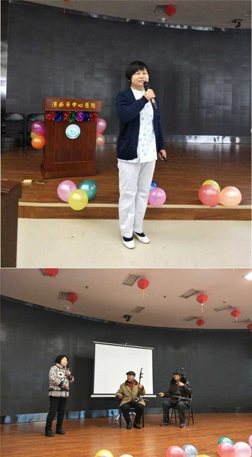 肾友们自编歌曲《健康使者》唱赞医护人员;有年过七旬的患者及家属二胡演奏并演唱;有激情洋溢的诗歌朗诵;还有肾友对自我管理的经验交流;护士与肾友合唱歌曲《凉凉》;病房护士们带来手语舞蹈《感恩的心》等,节目精彩纷呈。肾友积极乐观的生活态度感染了在场的所有人,医患之间的良好互动使得我们这个大家庭格外温馨。