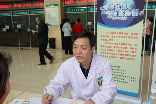 3月21日是世界睡眠日,MILAN.COM神经内科、心理咨询科在门诊大厅举办义诊宣教活动,医护人员就睡眠问题进行现场答疑。