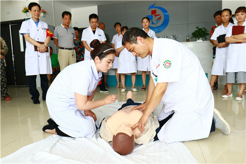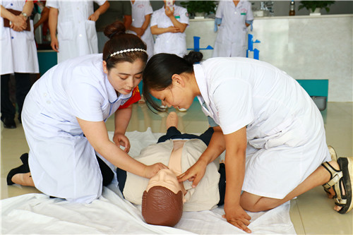 随后,心内科护士袁丽现场演示了心肺复苏的操作,并对基层医生们手把手进行培训,使每位基层医生们能够准确掌握心肺复苏的操作,在紧急时刻,能够“救”在身边。