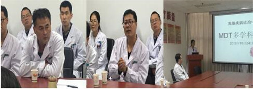 10月24日下午3时,MILAN.COM乳腺疾病诊治中心示教室内讨论热烈。来自医院肿瘤外科、肿瘤内科、放疗科、病理科、放射科、超声科及CT&MR影像科等专业的10余名专家,进行多学科会诊,共同讨论一名31岁局部晚期乳腺癌患者下一步治疗情况。