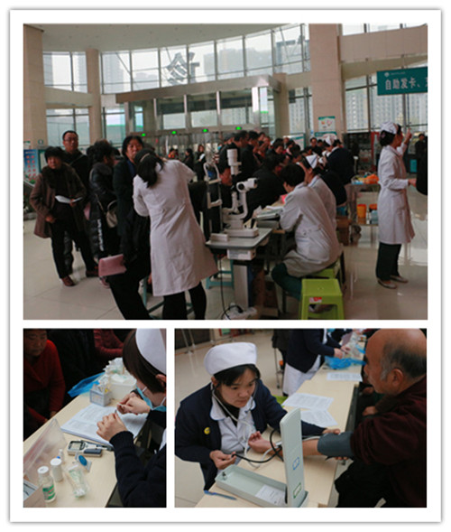 一大早,内分泌科白杨护士长和眼科李娟护士长带领医护人员早早投入到义诊工作的准备中,她们摆好桌椅、医疗仪器及健康宣传册做好义诊工作的各项前期工作,8点准时为前来义诊的人进行检查。内分泌科主任丁小炼、王卫梅主任医师、胡田颖副主任医师及眼科翟阿萍主治医师、黄国华医师根据患者的检查结果进行个体化治疗指导,糖尿病教育护士王菊贤及护士长白杨为糖尿病患者提供了饮食、运动及监测等方面的指导。