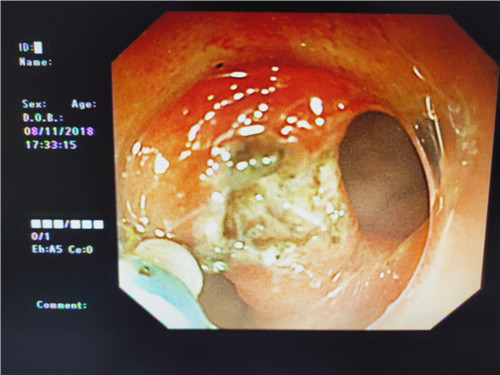 11月8日下午,内窥镜室准备为一名肠道狭窄患者实施肠道狭窄球囊扩张治疗。患者48岁,既往9月前因直肠淋巴瘤在外科行剖腹探查、小肠部分切除、乙状结肠部分切除,直肠肿物切除、小肠减压、阑尾切除术,术后在血液科化疗四次。4月前该患者排便不畅,行结肠镜检查提示:吻合口狭窄,但患者大便还可勉强通过。近日腹胀加重,大便难以排出,故入院于11月8日拟行肠镜下吻合口狭窄球囊扩张术。