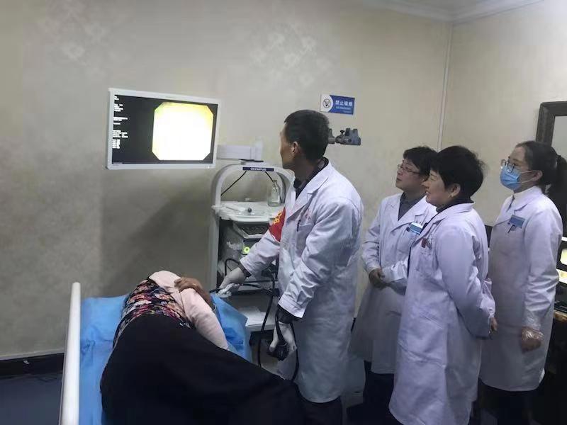 听说市上专家要来义诊,十几名患者早早地从家里赶来等候在义诊现场。现场气氛热烈、就诊患者络绎不绝,每位患者和专家们近距离交流和咨询,在家门口享受到了上级专家的诊治和指导。期间有患者要求专家给其进行胃镜检查,经过周密准备,朱浪潮主任在胃镜室为其进行了胃镜检查。