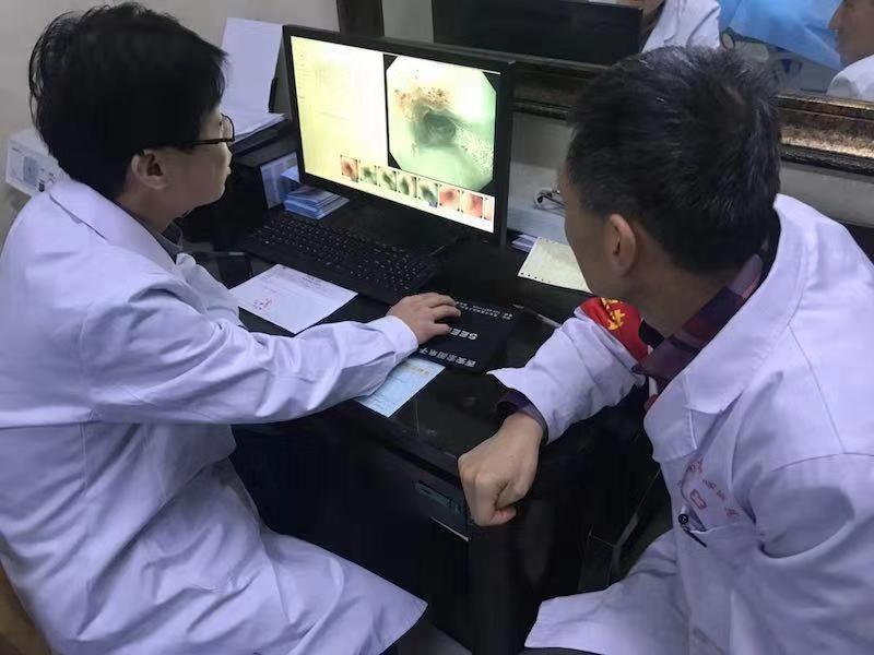 内镜室工作人员还专门邀请刘利平主任、盛竹鸽副主任医师为他们进行指导,二位医师把平时积累的经验传授给了基层医生,同时给他们也上了一堂非常实用的技术操作课,大家坦承难得有这样的机会。