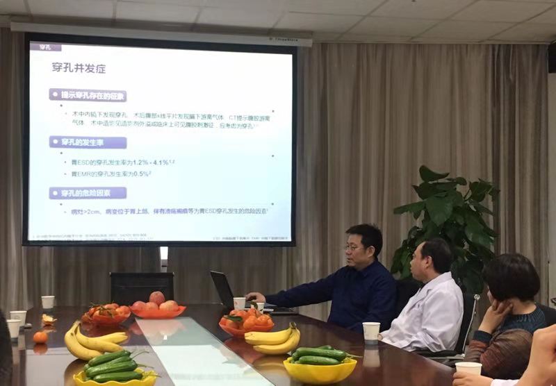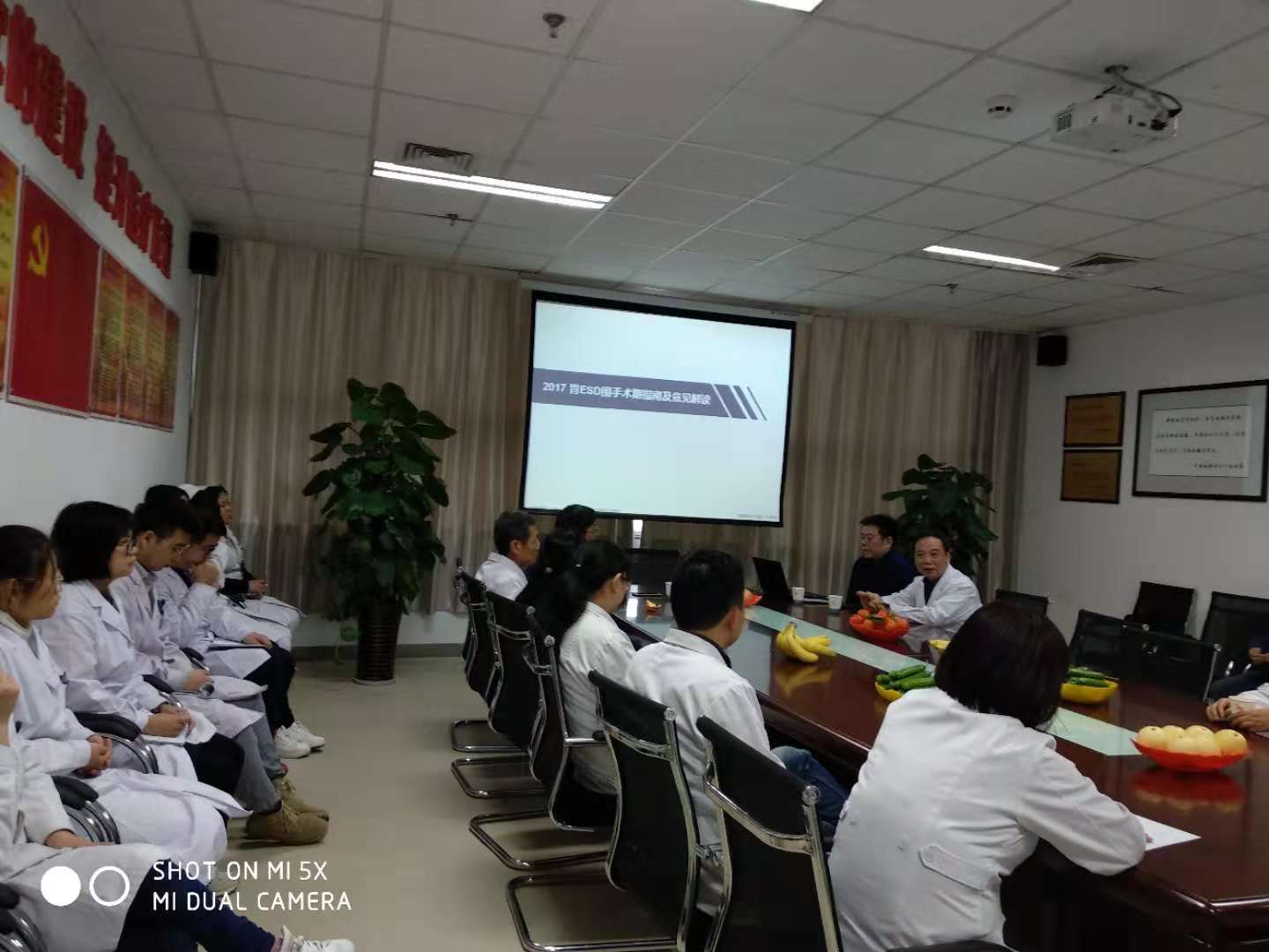 会议上,王进海教授做了题为《胃ESD围手术期指南及意见解读》的讲座。ESD是内镜下早癌的粘膜剥离术,是省内的先进技术,目前,渭南地区只有中心医院消化内科开展了此项技术。王进海教授就他们医院在早癌筛查和ESD治疗过程中的一些经验进行了分享。同时也针对早癌筛查国内外实际开展情况进行了比较,分析了国内早癌筛查现况和检出率低的原因,对大家提出了中肯意见和建议。会议后讨论环节气氛更加热烈,大家都争先提出了自己在临床工作中和实际操作中的种种疑问和困惑,王教授通过自己丰富的临床经验都一一给予了详细的解答和指导。虽然天色已晚,但大家仍在积极地交流和讨论,所有参会人员都表示,此次学术会能与专家面对面交流和指导使自己受益匪浅。特别是专家进行的特殊病例经验分享,对大家有很好的临床指导和借鉴作用。