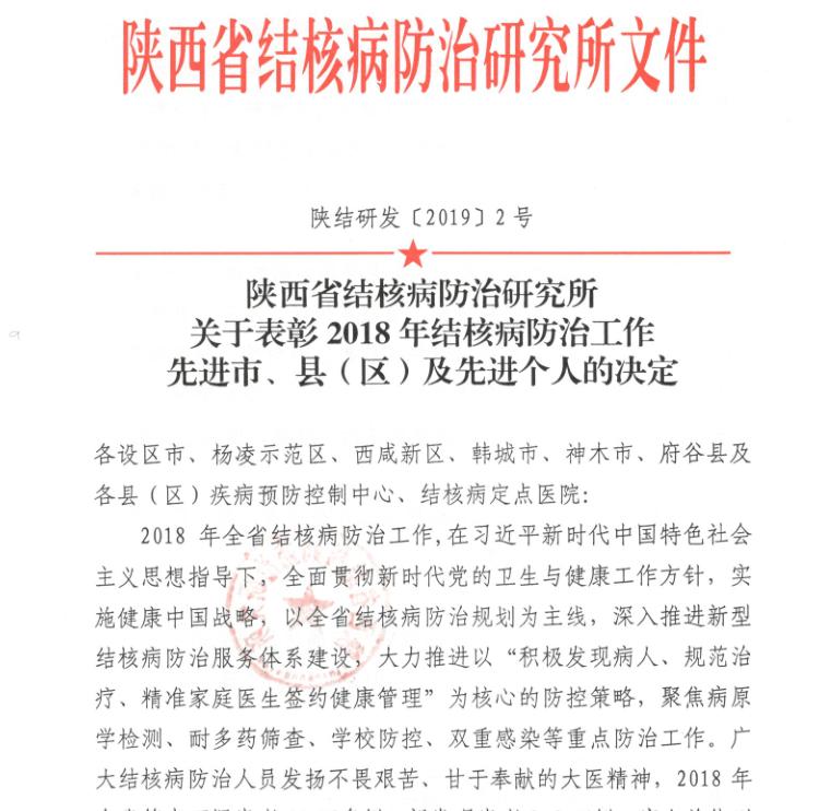 疾控科以实施健康中国战略、推进新型结核病防治模式为动力,强化结核病患者发现报告、诊断治疗和随访服务等全环节管理,全面推进新型结核病防治管理工作。在传染病领导小组的指挥下,开拓创新,扎实工作,补短板、强弱项、优服务,不断加强院内培训、联合督导,使诊疗工作更加规范,医防工作更加顺畅,结核病管理质量明显提高,为健康陕西、健康中国做出贡献。