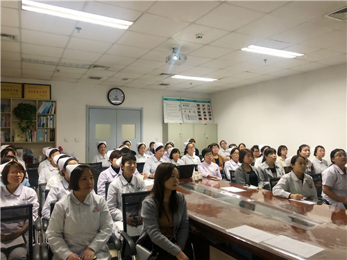 杨霏护士长分享了《中线导管概述及临床应用》,讲解了中线导管的简介、置管流程、应用现状、相关并发症等,使大家全面了解了中线导管,为保护患者血管、减轻护士的工作量提供了保障。