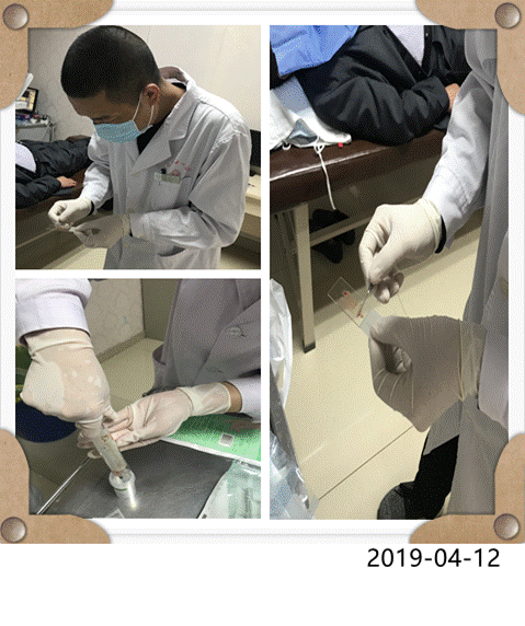患者因甲状腺超声检查发现甲状腺双叶低回声结节边界欠清、内探及血流信号、右侧结节可见砂砾样钙化,需进一步行甲状腺细针穿刺活检术取细胞病理明确甲状腺结节性质,为下一步针对性治疗提供金标准。由于患者甲状腺结节多、位置深,故由超声科韩婷婷医师先行超声检查引导,确定需穿刺病灶部位,内分泌科刘莲叶副主任医师为患者行局部麻醉后,在超声引导下行甲状腺结节细针穿刺活检术抽取细胞,同时邀请病理科盛鹏技师进行细胞涂片、固定,并留取涂片后剩余细胞于液基保存液中,为病理学诊断提供珍贵的细胞标本。操作过程顺利。