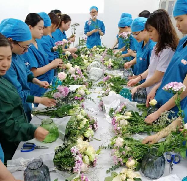 本次活动邀请了麻醉手术科的师秋茹老师现场教学,她不光是一位优秀的麻醉医生,更是一位出色的花艺师,在她的讲解下护理团队不仅了解了花的种类及其花语,还学到了插花的基本知识和操作技巧,整个活动新颖有趣,现场气氛欢乐融洽。