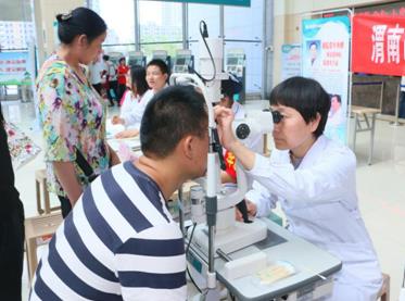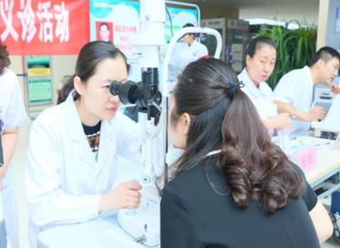 6月6日一大早,李娟护士长带领科室人员来到门诊大厅,提前准备好桌椅、宣教资料及眼压仪、裂隙灯、眼底镜、视力表等免费检查仪器。8:00,门诊就挤满了前来义诊的群众,护理人员首先为患者进行了视力、眼压检查。8:30科主任田瑾带领眼科团队查完房后就匆匆来到现场,为患者进行健康用眼指导、科学咨询以及裂隙灯、眼底镜检查。