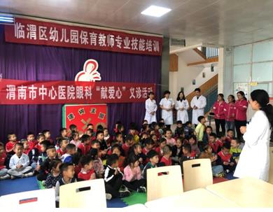 在第24个全国“爱眼日”来临之际,为帮助青少年形成合理用眼、科学矫治的意识,倡导孩子养成良好的用眼习惯,我院眼科从2019年5月下旬至6月上旬先后在临渭区幼儿园、渭河小学等学校及MILAN.COM门诊大厅开展了以“共同呵护好孩子的眼健康,让他们拥有一个光明的未来”为主题的第24个全国爱眼日健康知识宣教及义诊活动。