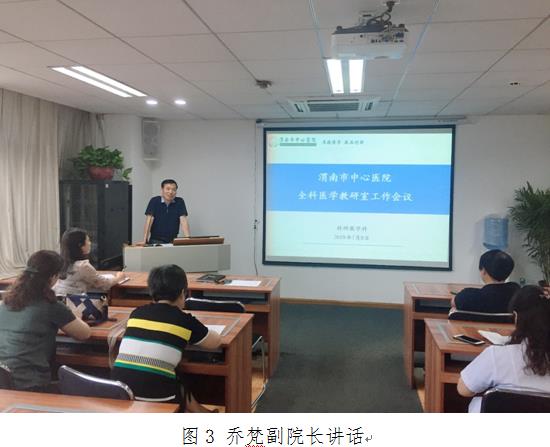 最后,由主管院长乔梵作总结发言。他指出,医院已经明确全科医学教研室的职责和会议要求,全科医学科全面负责教研室工作,确保教研室各项活动更加制度化、规范化;科教科、全科医学科和各住培参与科室要紧密协作,进一步做好学员培训学习和政治思想工作,落实相关待遇,提高学员学习工作积极性;切实做好省内住培迎评工作,促进教学质量稳步提升;逐步提升我院全科基地区域影响力,打造品牌全科住培基地,为全省基层医疗机构培养优秀全科医生;与西安交通大学医学部、陕西省中医药大学加强协作,快速提升基地的教学水平和科研能力。