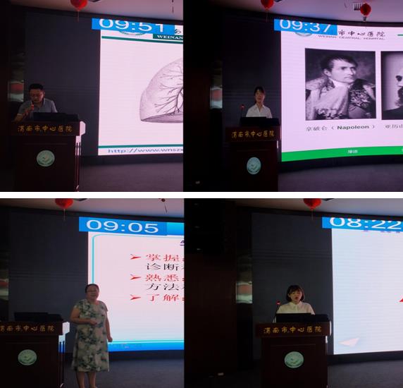 比赛开始后,参赛选手根据顺序依次上台进行10分钟授课演讲,选手们慷慨激昂,充分展现个人课堂魅力,讲课内容涉及临床医学各学科知识。有的通过PPT绘声绘色讲授知识,有的巧妙利用案例进行授课,有的通过播放短视频展示手术过程,还有的注重课堂承上启下、与学生交流互动。选手们各有所长,赢得评委们不断点头赞许。最终通过评委组综合评比推荐,优中选优,15名参赛选手进入院内决赛。