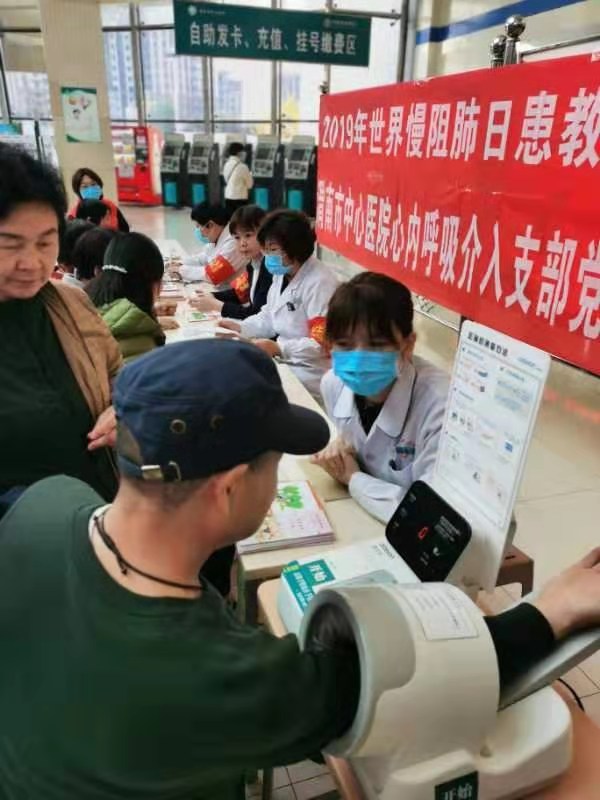 在第十八个世界慢阻肺日来临之际,MILAN.COMMILAN.COM医护人员及心内呼吸介入党支部党员志愿者在门诊一楼大厅进行以"齐心协力终结慢阻肺"为主题的大型义诊活动。