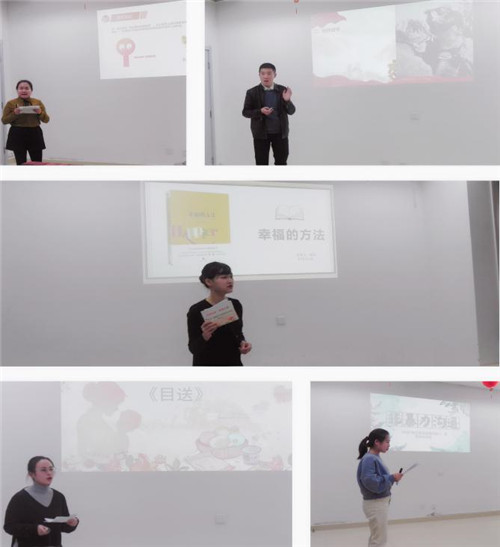 杨欢分享书籍《目送》,作者龙应台,内容讲到时间是一只藏在黑暗中的温柔的手,在你一出神一恍惚之间,物走星移。我们应珍惜当下多陪伴父母,感恩父母,感谢他们给予了我们生命,感谢他们给予了我们人间最浓的亲情和最深的挂念,给了我们无尽的爱。田华分享 泰勒·本-沙哈尔博士的书籍《幸福的方法》这是一本教大家如何锻炼自己幸福能力的神奇书籍。通过对书中四个象限的讲解,让大家分别列出自己是哪一种人格。