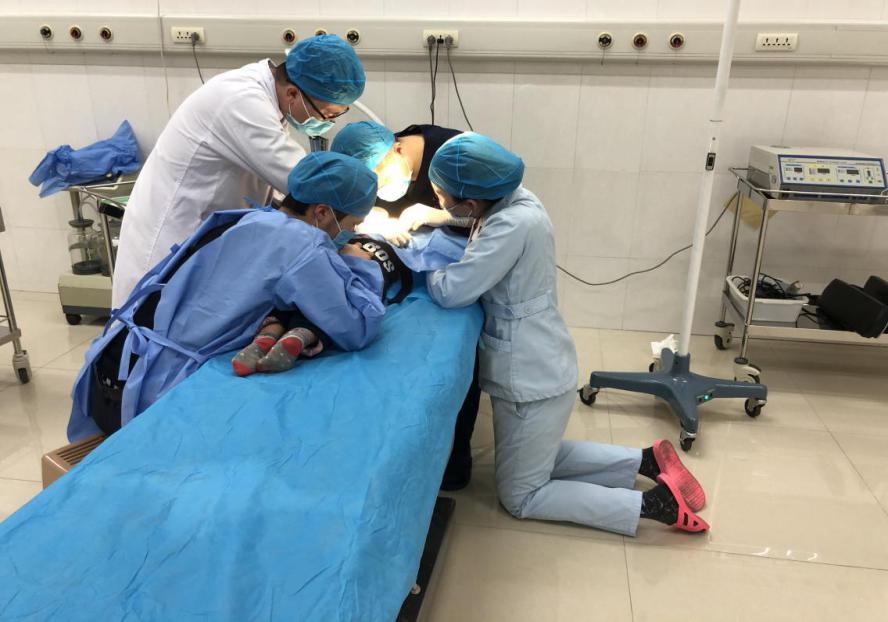 整个手术过程持续近2个小时,随着手术的顺利进行,参与手术的王鑫大夫和护士袁清、荆阳阳以及孩子父亲悬着的心慢慢放了下来。19:30分,手术终于结束,清创室里还一直萦绕着袁清为孩子准备的《小猪佩奇》的旋律,孩子也终于露出了笑脸。