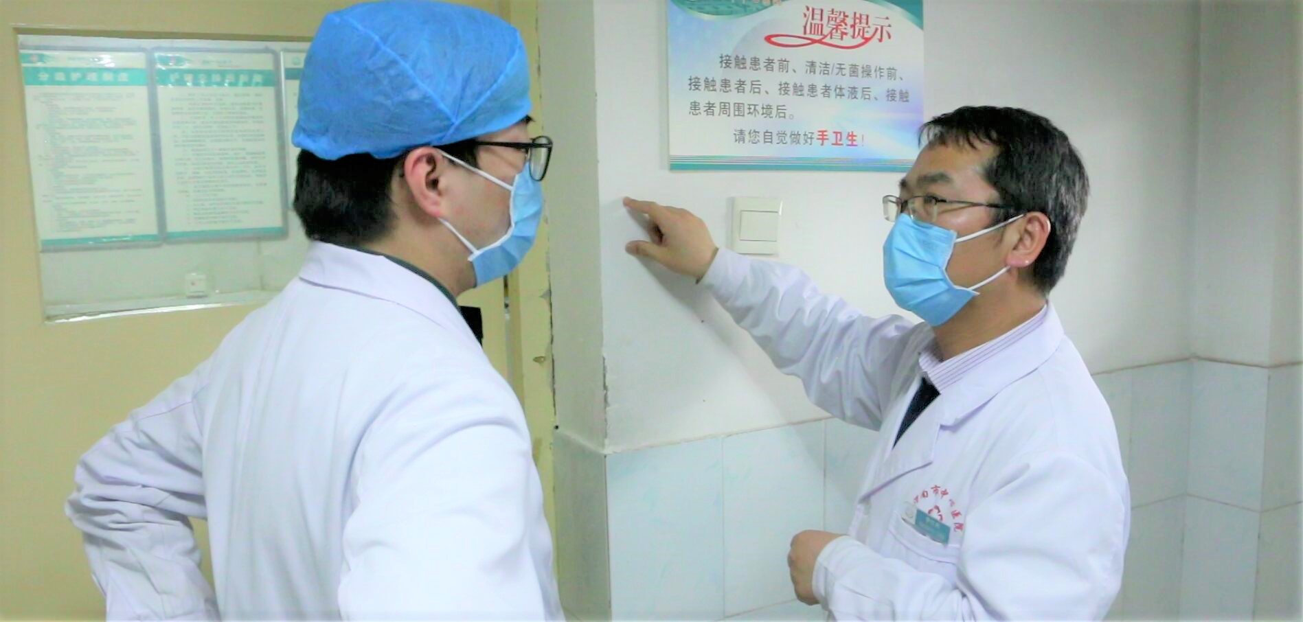 感染的风险、患属的焦急、身体的疲惫,在感染性疾病科,这些都是医护人员每天必须面对的重重压力。但面对疫情,面对困难,李红兵更多表现出的是坚定、乐观的态度,这也是作为一名共产党员必须表现出来的品质。用医者的乐观,去点亮患者对抗病魔的信心。每天在忙完白天的工作后,他都会利用晚上休息时间,不断研习国家《诊疗方案》和《防控方案》的最新内容,结合临床诊疗经验,将相关的指南向医生们讲解,使大家对疾病有了更深刻的了解。他组建微信群,将发热门诊和隔离病房的相关医护人员加进去,大家有任何问题在群里咨询,他都会耐心解答,并且通过微信群鼓励大家和关心大家。每一次去采访他的时候,他说的最多的一句话就是,“能不能这会先不要采访,还有许多事情需要处理,实在不好意思。”看到他转身的背影,那一刻被他的精神所感染,体会到什么是医者的责任和使命。因为疫情来临时,每一位感染科医生都不能缺席,该他们上的时候都会义不容辞走上第一线。当疫情结束后,他们仍然会坚守在这里,不忘初心,因为这里一直是感染性疾病科医生的主战场。