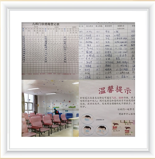 儿科门诊针对疫情防控情况,结合院感要求,制订了一系列的登记表。对各室清洁消毒具体化,物品细节不遗漏。开窗通风、循环风空气消毒、紫外线照射,彻底对门诊角角落落消毒。每日对输液患儿监测体温,了解动态变化,及时报告。新冠肺炎预防内容粘贴在检查室、输液室、自助缴费机等醒目位置,护士对家属不间断宣教戴口罩、勤洗手,多通风,互相保持距离。输液患儿采取间隔有效距离治疗,注射时一人一室。门诊北入口增加登记,对所有出入人员全部排查,确保门诊就诊、输液患儿安全。