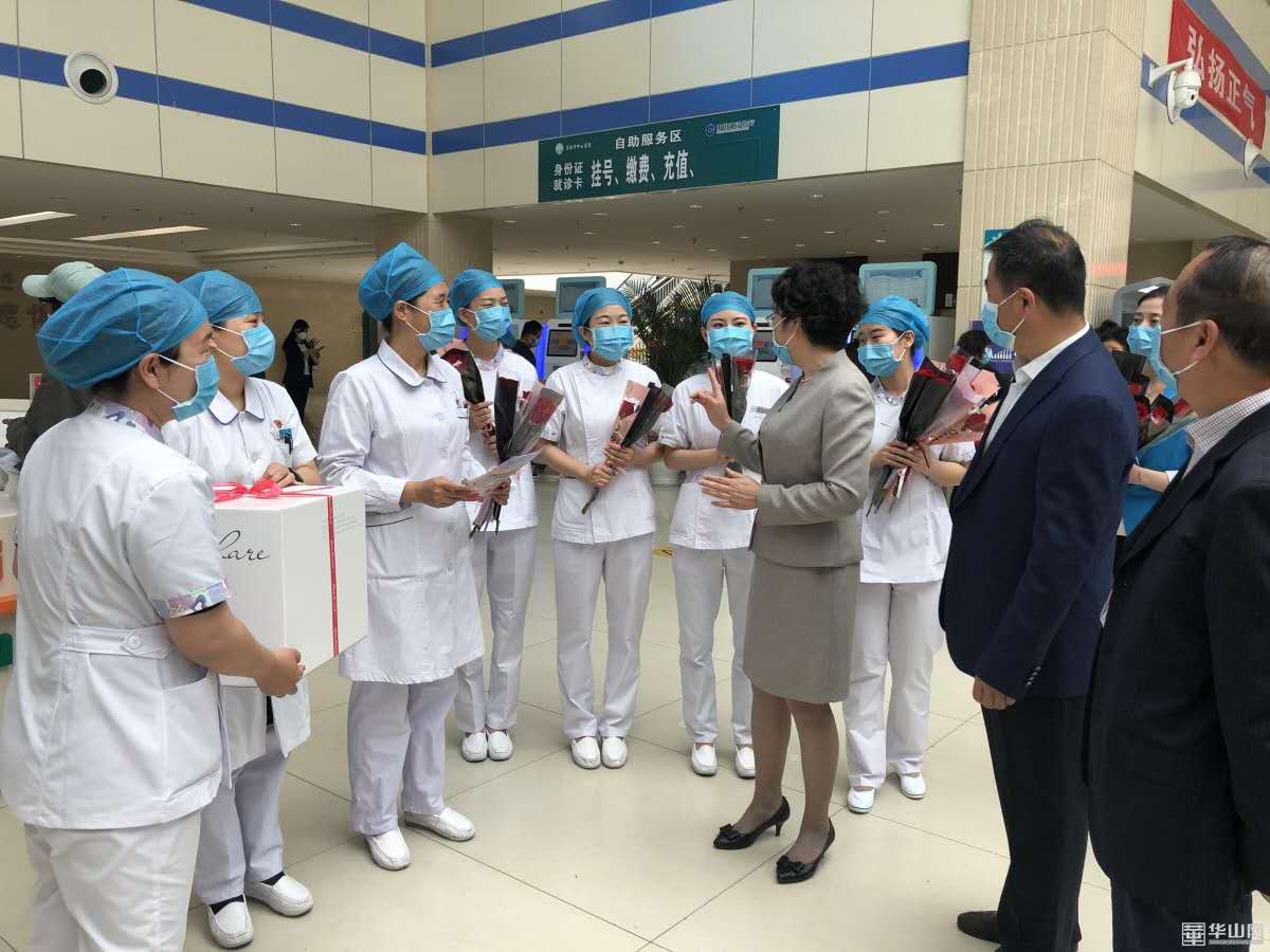 国际护士节,鲜花送祝福,蛋糕寄温情。为庆祝5.12护士节,关爱一线护理人员,医院领导带着特制的蛋糕、鲜艳的玫瑰花和饱含深情的慰问信,温暖着每一位医护的心。