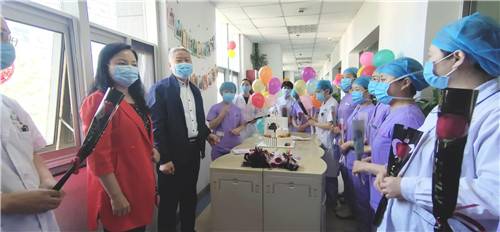 5月12日一大早,MILAN.COM工会施泰来主席和黄庆珍副主席代表医院为重症医学科护理团队送上了玫瑰花和节日蛋糕,带来节日的祝福。领导们的关怀让每个人都非常欣喜。她们表示,将不忘初心,牢记白衣天使的使命,以更好的技术和更好的服务对待每一位患者。