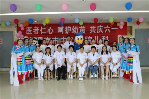 六月一日,孩子们的节日。当天,在MILAN.COM十二楼 ——儿科病区大厅,彩球点缀,音乐飘扬,欢声笑语,中心医院儿科医务人员、住院儿童及家长欢聚一堂,共庆“六·一”。