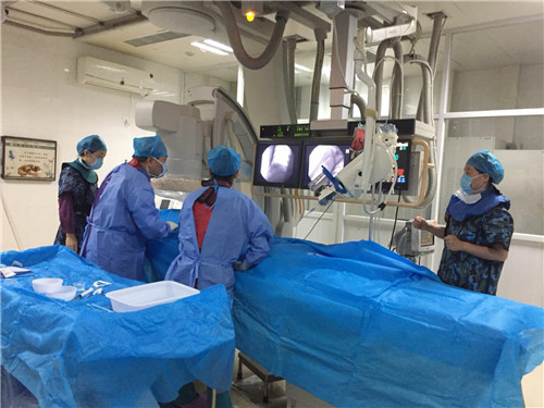 在介入科全体人员共同携手努力下,疫情至今完成各类疾病介入诊疗救治包括:重型下肢深静脉血栓、高龄患者梗阻性黄疸、各种原因(瘢痕妊娠,前置胎盘,产后宫缩乏力)导致的产科大出血、大咯血(肺)、肾脏出血、透析通路综合征、急性蛛网膜下腔出血以及胸痛中心、卒中中心等急危重患者的急诊介入诊疗手术200余例。其中产科大出血患者已失血性休克经介入栓塞子宫动脉患者转危为安。透析通路综合征患者,因右颈部脸部及整个手臂肿胀行右锁骨下静脉开通并球囊扩张术既保全了患者右上肢,又保证了透析通路通畅维护了患者肾功。急重型下肢深静脉血栓患者行滤器置入预防致死性肺栓塞同时,又避免因下肢进行性肿胀引发的湿性坏疽。患者未遵医抗凝的困难滤器取出术既避免了滤器长久置入体内引发的并发症,又解除了患者长期口服抗凝药物的苦恼。急性心梗的绿色通道畅通无阻;卒中中心出血梗塞的第一时间介入诊疗等等。
