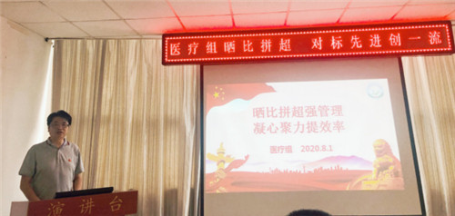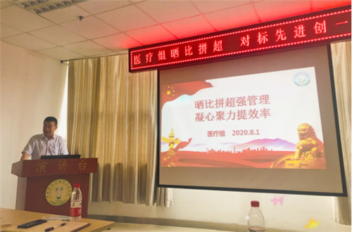 做表率,带头干。焦建雄副院长对上半年医疗组的工作进行了阐述,对各部门在战疫中的辛勤付出表示衷心感谢。肯定了医务科在战疫取得成果中发挥的重要作用,对疾控科在疫情期间及时准确的数据上报、质控科和医疗安全科放弃春节休假积极参与疫情救治并创新工作给予表扬。指出对标管理、绩效考核及精细化管理等重点工作取得的成效、存在的问题及今后努力方向。他强调,医疗组主要承担着疾病诊治、医疗保健、学科建设及质量安全管理等重要的职能,在医院管理中具有举足轻重的作用。院党委开展此项活动正是大家所愿,通过“晒比拼超”,就是要改变大家“庸、懒、散、慢、虚”以及不担当不作为乱作为的工作作风、培养责任担当意识和积极进取精神。希望大家一定要明确岗位职责,熟知管理标准,找准目标定位,把自己培养成医疗管理专家。