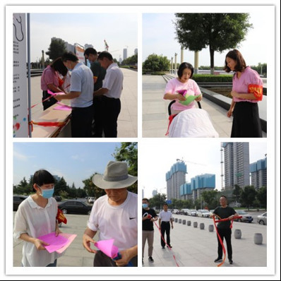 志愿者们来到金堆城社区,不顾天气炎热,在广场上摆好桌椅和展板为小区的居民进行健康宣教。活动通过展板、宣传资料、现场讲解等方式向居民普及预防新冠肺炎的相关知识、文明健康生活知识、疫情防控工作知识,使居民深刻了解创建相关知识和健康知识。活动期间共计发放宣传资料一百余份,志愿者们热情的态度和生动的讲解受到了社区居民的好评。