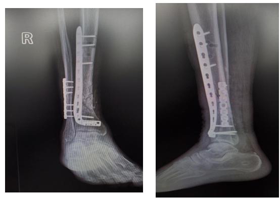 II 期采用自体松质骨及同种异体骨移植+内固定术